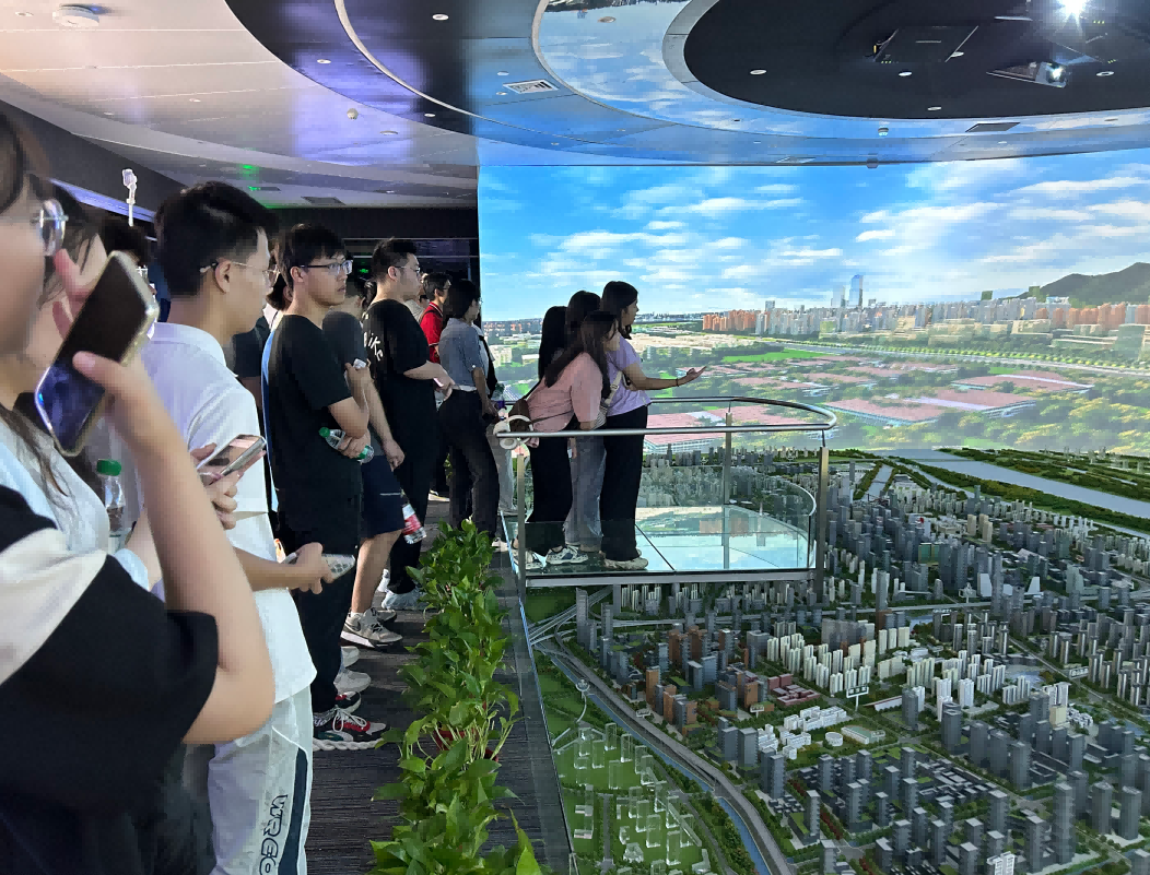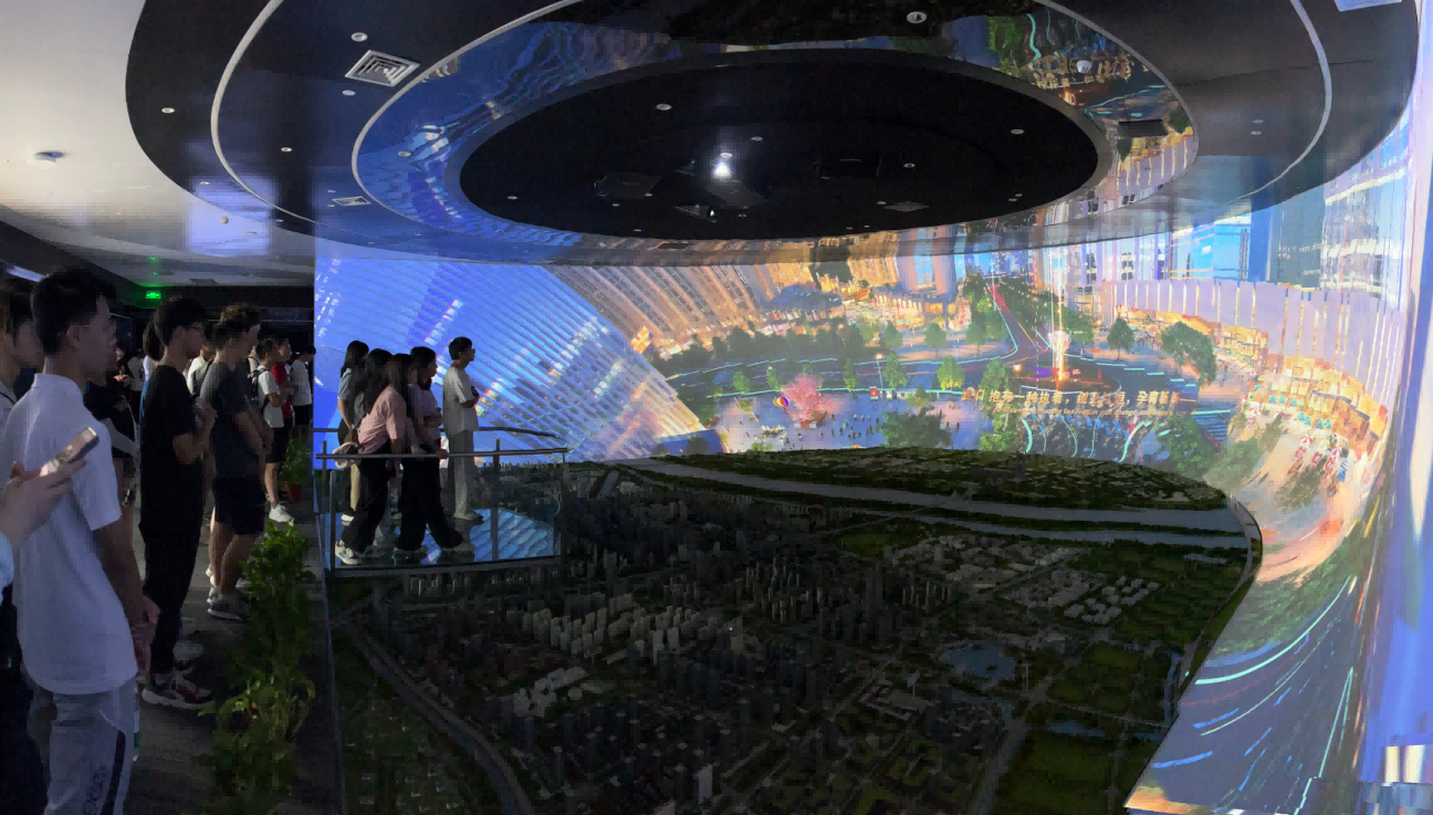 园区内现代建筑群错落有致,每一砖一瓦都蕴含着创新和科技的基因。long8 龙8国际科技IT菁英暑期实训营的学员们怀揣着对科技的无限憧憬步入研创园展厅。展厅内部设计充满科技感,一块块巨大的模型和显示屏映入眼帘,生动展现了研创园的科技规划,以及从梦想走向现实的开展历程。