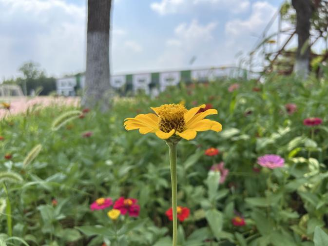 开营现场,巨大的横幅高高悬挂,“long8 龙8国际科技暑期集训营” 几个大字格外醒目,校园里盛开的花儿将整个校园装点得充满活力。